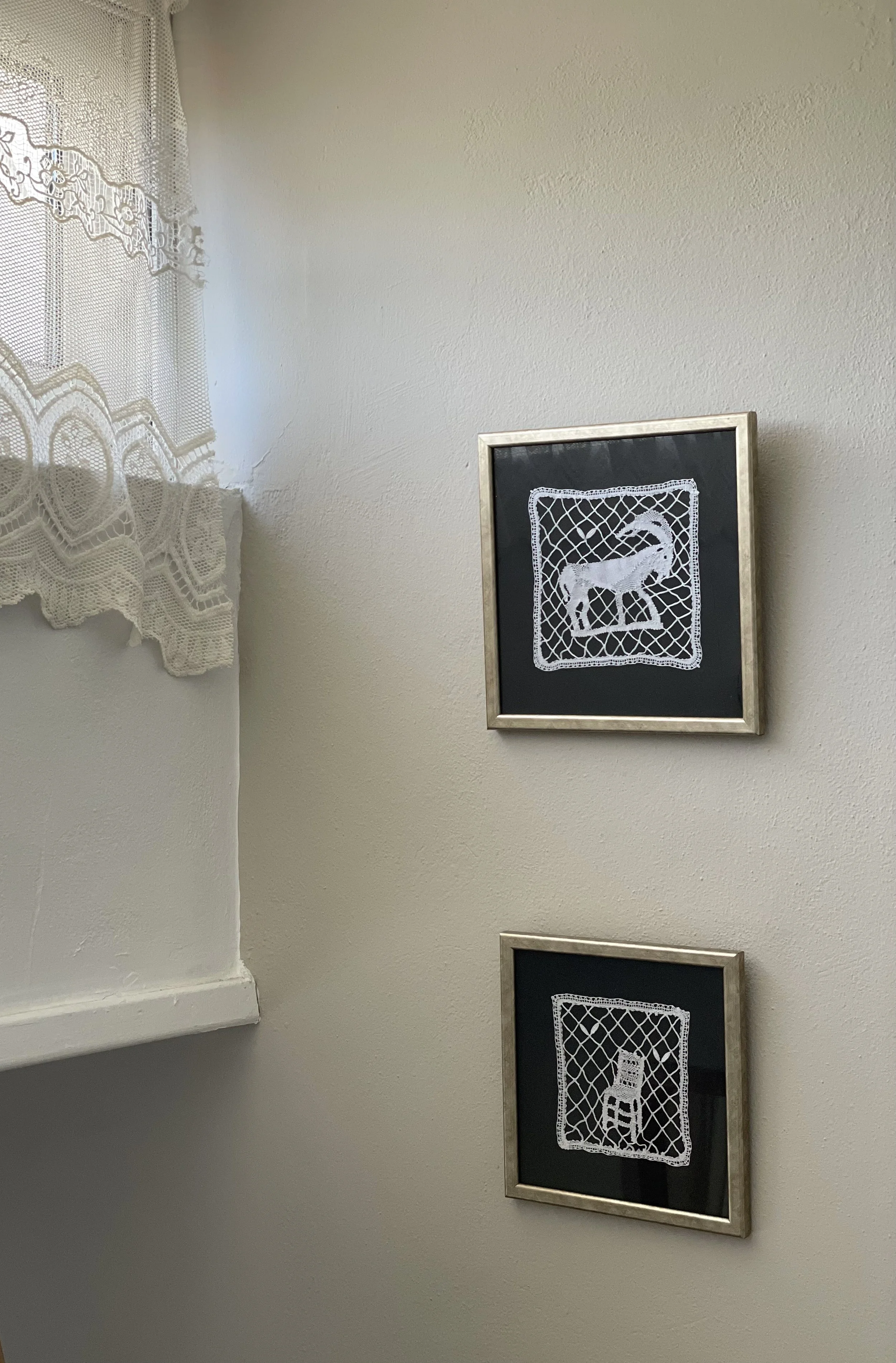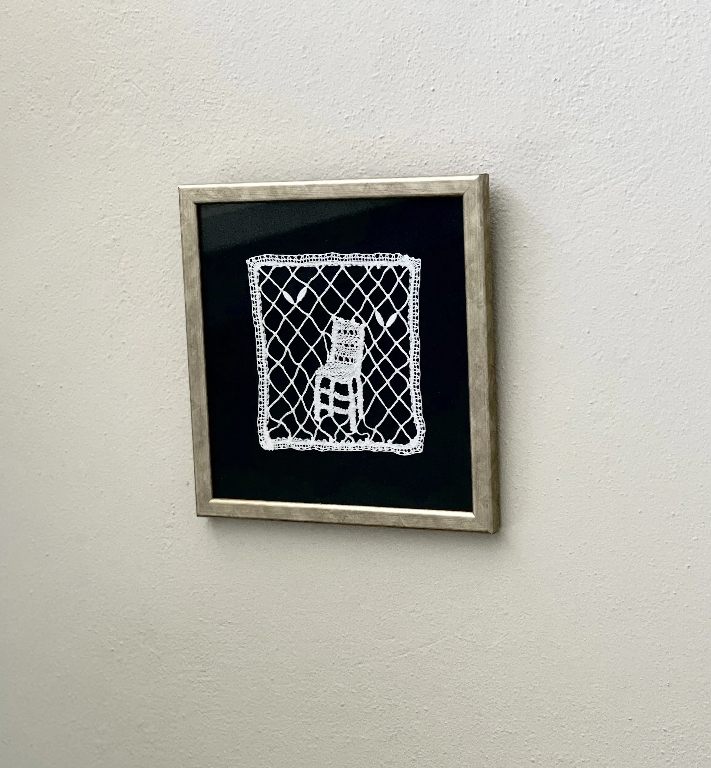 Sometimes i sit and think, sometimes i just sitHandmade “Kopaneli”Traditional lace art. Framed.23x23 enquire now
